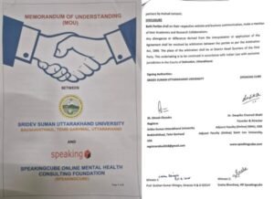 टिहरी : श्रीदेव सुमन उत्तराखंड विश्वविद्यालय, बादशाहीथौल, टिहरी गढ़वाल और स्पीकिंगक्यूब ऑनलाइन मेंटल हेल्थ कंसल्टिंग फाउंडेशन के बीच एक महत्वपूर्ण समझौता...