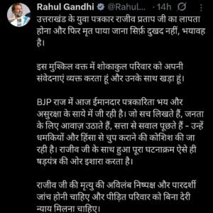 नई दिल्ली: उत्तराखंड के उत्तरकाशी जिले में स्थानीय मुद्दों पर मुखर पत्रकार राजीव प्रताप की रहस्यमयी मौत ने पूरे राज्य...