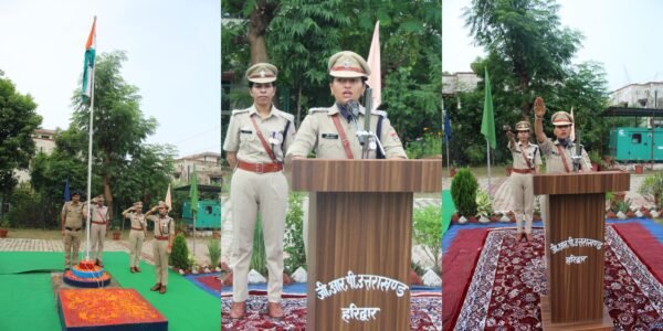 हरिद्वार : पुलिस लाइन जीआरपी में हर्षाेल्लास के साथ 79वां स्वतन्त्रता दिवस मनाया गया। पुलिस अधीक्षक जीआरपी IPS तृप्ति भट्ट द्वारा ध्वजारोहण किया गया। इस अवसर पर राष्ट्रगान व शपथग्रहण उपरान्त पुलिस मुख्यालय स्तर से विभिन्न पदकों हेतु सम्मानित हुए पुलिस अधिकारियों/कार्मिकों के नाम पढ़कर सुनाये गये। जिसमें इस वर्ष जीआरपी से इंस्पेक्टर बिपिन चंद्र पाठक का चयन मुख्यमंत्री सराहनीय सेवा पदक (सेवा के आधार पर) हुआ है। राष्ट्रीय पर्व पर आज पूरे उत्तराखंड में जीआरपी के समस्त थाना/चौकियों पर ध्वजारोहण उपरान्त पुलिसकर्मियों को मिष्ठान वितरण किया गया।