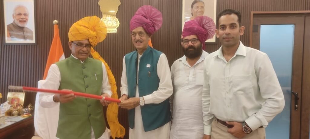 नई दिल्ली : वरिष्ठ भारतीय जनता पार्टी (भाजपा) नेता नारायण सिंह राणा ने दिल्ली में केंद्रीय कृषि मंत्री श्री शिवराज सिंह चौहान से उनके सरकारी आवास पर मुलाकात की। इस दौरान उन्होंने क्षत्रिय शूरवीरों का प्रतीक ‘चंद्रहास’ तलवार भेंट की। राणा ने उत्तराखंड में बंजर हो रही कृषि भूमि, परित्यक्त खेत-खलिहानों और खंडहर होते मकानों की गंभीर स्थिति से मंत्री जी को अवगत कराया।