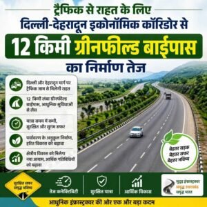ट्रैफिक से राहत के लिए दिल्ली-देहरादून इकोनॉमिक कॉरिडोर से 12 किमी ग्रीनफील्ड बाईपास का निर्माण तेज, एनएचएआई द्वारा 716 करोड़ रुपये की लागत से परियोजना निर्माणाधीन