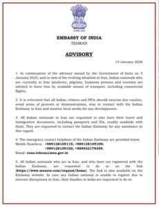 ईरान में सुरक्षा स्थिति बिगड़ी, भारत ने नागरिकों को तत्काल बाहर निकलने की दी सलाह