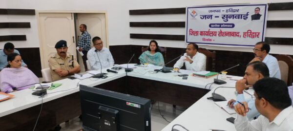 हरिद्वार : जनपदवासियों की समस्याओं का त्वरित निराकरण करने के उद्देश्य से जिलाधिकारी मयूर दीक्षित की अध्यक्षता में प्रत्येक सोमवार को जिला कार्यालय सभागार में जन सुनवाई कार्यक्रम आयोजित किया जा रहा है, आज जनसुनवाई कार्यक्रम में विभिन्न क्षेत्रों से आए फरियादियों द्वारा जल भराव,पेयजल ,अतिक्रमण,विद्युत,सड़क आदि से संबंधित 57 समस्याएं दर्ज कराई गई। जिलाधिकारी द्वारा 18 समस्याओं का मौके पर निराकरण किया गया शेष समस्याओं को त्वरित निस्तारण हेतु संबंधित विभागों को प्रेषित किया गया।