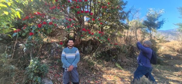 ज्योतिर्मठ : देवभूमि उत्तराखंड का राज्य पुष्प ‘बुरांश’ इन दिनों हिमालय की गोद में अपनी लालिमा बिखेर रहा है, लेकिन जोशीमठ के सिहंधार निवासी आयुष सती के लिए ये केवल पेड़ नहीं, बल्कि उनके परिवार के अटूट सदस्य हैं। उद्यान विभाग के समीप अपनी निजी भूमि पर आयुष 50 से अधिक बुरांश के पेड़ों का संरक्षण किसी संतान की भांति कर रहे हैं। आयुष बताते हैं कि इन पेड़ों को उनके दादा और पिता ने एक छोटे पौधे से पाल-पोषकर विशाल बनाया था और आज वह स्वयं इस विरासत को जीवित रखने का जिम्मा संभाल रहे हैं। जैसे-जैसे आयुष की उम्र बढ़ी, उनके साथ ये पेड़ भी ऊंचे होते गए और आज फरवरी-मार्च के महीने में जब पूरा बगीचा सुर्ख लाल फूलों से सराबोर होता है, तो यहाँ से गुजरने वाला हर पर्यटक इस विहंगम दृश्य को देख ठिठक जाता है। पर्यावरण संरक्षण की यह अनूठी मिसाल न केवल स्थानीय लोगों के लिए प्रेरणा बनी हुई है, बल्कि सोशल मीडिया के दौर में प्रकृति प्रेम का एक बड़ा संदेश भी दे रही है।