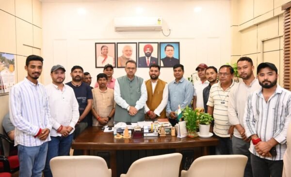 देहरादून : प्रदेश के कृषि एवं ग्राम्य विकास मंत्री गणेश जोशी से आज जनपद चमोली के देवाल ब्लॉक प्रमुख तेजपाल सिंह रावत के नेतृत्व में एक प्रतिनिधिमंडल ने भेंट की। प्रतिनिधिमंडल ने कैबिनेट मंत्री गणेश जोशी को ज्ञापन सौंपकर देवाल विकासखंड में पीएमजीएसवाई के अंतर्गत स्वीकृत सड़कों के टेंडर शीघ्र जारी करने तथा पीएम श्री अटल उत्कृष्ट राजकीय इंटर कॉलेज में एनसीसी कक्षाएं शुरू कराने की मांग की। इसके साथ ही प्रतिनिधिमंडल ने देवाल में 15 सितम्बर से प्रस्तावित मनरेगा के सोशल ऑडिट को दैवीय आपदा की परिस्थितियों को देखते हुए फिलहाल के लिए स्थगित करने का आग्रह भी किया। ग्राम्य विकास मंत्री गणेश जोशी ने प्रतिनिधिमंडल की मांगों को गंभीरता से लेते हुए संबंधित अधिकारियों को दूरभाष पर आवश्यक दिशा-निर्देश जारी किए। इस अवसर पर ब्लॉक प्रमुख देवाल तेजपाल सिंह रावत, दीपक सिंह गड़ियां, दयाल सिंह बिष्ट, अरुण कुमार, रमेश गड़िया, जितेंद्र बिष्ट, संदीप बिष्ट, किशन सिंह, प्रकाश मिश्रा, राजेंद्र कुनियाल, गंगा सिंह, दलवीर सिंह आदि उपस्थित रहे।