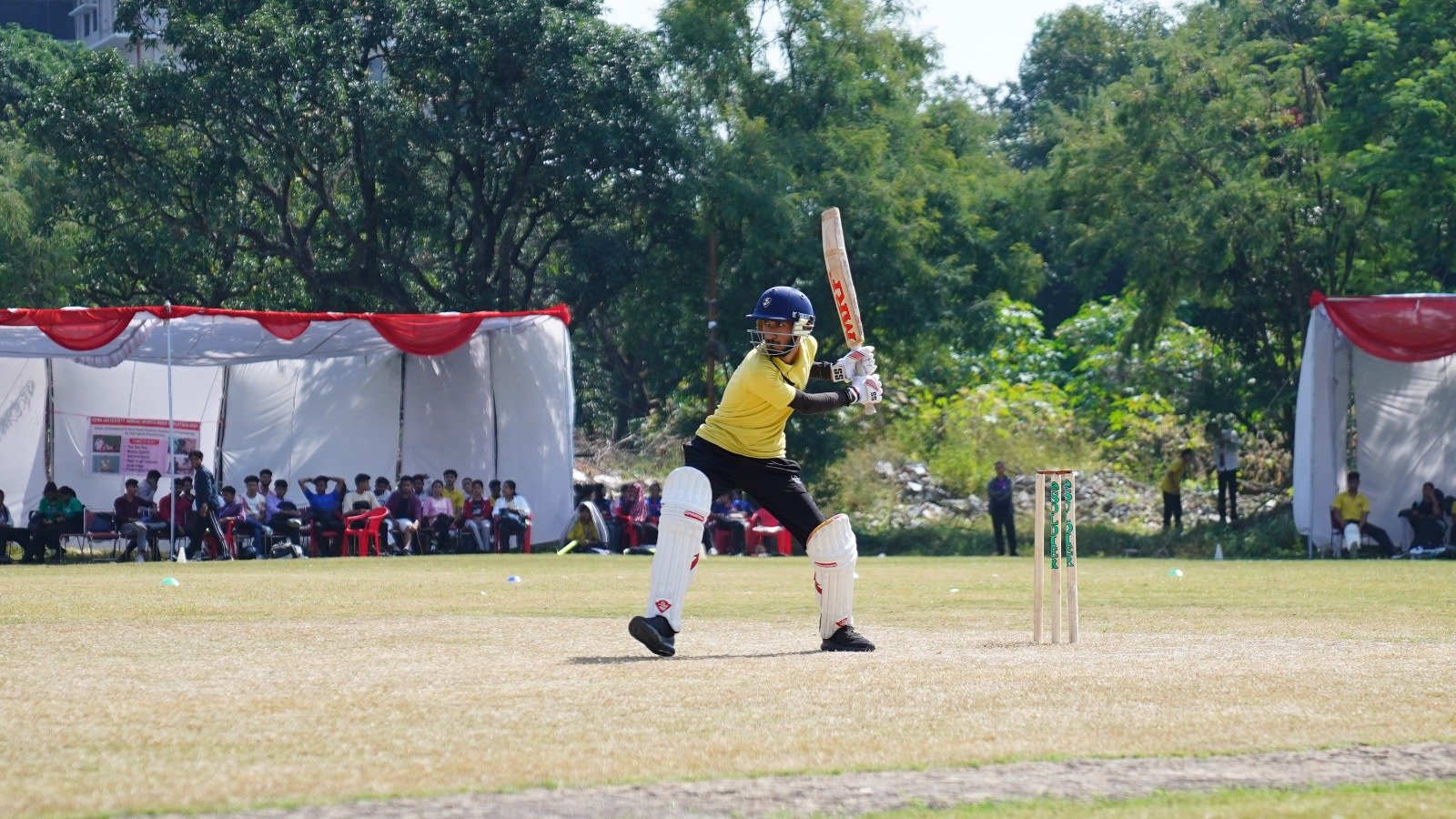 गुरुवार को श्री गुरु राम राय विश्वविद्यालय के अलग-अलग खेल मैदानों पर चैथे दिन की प्रतियोगिताओं का शुभारंभ डाॅ अजय कुमार खण्डूड़ी, कुलसचिव एसजीआरआर विश्वविद्यालय, डाॅ आर.पी.सिंह, समन्वयक एसजीआरआरयू, विजय नौटियाल, अधिकृत हस्ताक्षरी प्रबन्धक, एसजीआरआर एजुकेशन मिशन, डाॅ पंकज मिश्रा एवं खेलोत्सव के सचिव सत्य प्रकाश जोशी ने संयुक्त रूप से किया। क्रिकेट का फाइनल मुकाबला स्कूल ऑफ योगिक साइंस एण्ड नैचरोपैथी एवं स्कूल ऑफ ह्यूमैनिटीज एण्ड सोशल सांइसेज़ के बीच खेला गया। योगिक साइंस ने टाॅस जीतकर गेंदबाजी का फैसला किया। ह्यूमैनिटीज के बल्लेबाज गौरव ने 15 गेंदों पर एक चैके और एक छक्के की मदद से 16 रन बनाए। सलामी बल्लेबाज पारितोष ने 8 गेंदों पर 13 रनों की ताबडतोड़ पारी खेली। पारितोष ने 2 चैके और एक छक्का लगाया। ह्यूमैनिटीज की टीम ने निर्धारित 10 ओवरों में 7 विकेट के नुकसान पर 76 रनों का लक्ष्य रखा। योगिक साइंस की ओर से देवराज ने 2 विकेट चटकाए। सूरज, अभिषेक, जतिन निखिल ने एक एक विकेट हासिल किए।