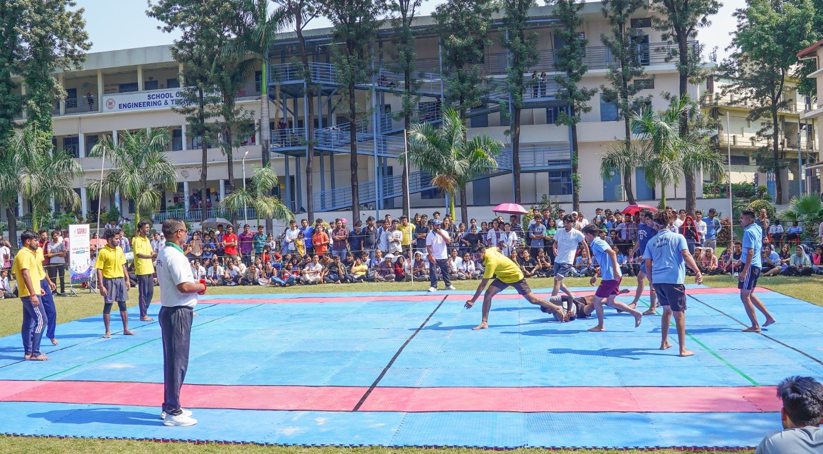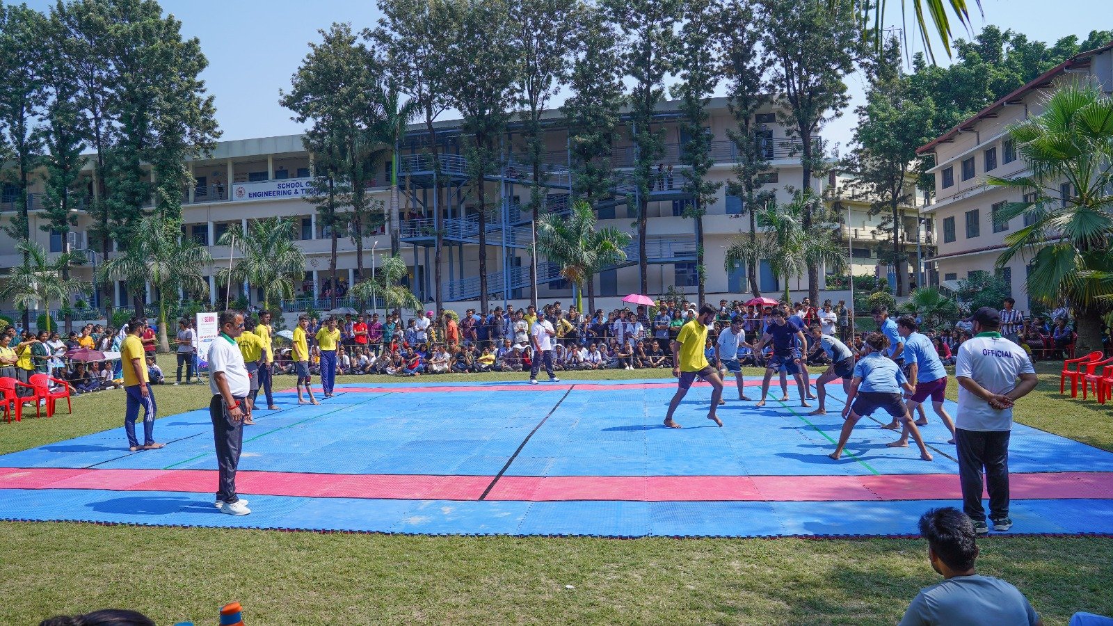 बालक वर्ग कबड्डी में स्कूल ऑफ एग्लीकल्चर स्कूल ऑफ मैनेजमेंट, स्कूल ऑफ फार्मेसी ने अपने अपने मैच अगले राउंड में प्रवेश किया। बास्केटबाॅल बालिका वर्ग का फाइनल स्कूल ऑफ नर्सिंग एवं बालक वर्ग का फाइनल स्कूल ऑफ मैनेजमेंट ने जीता। बास्केटबाॅल बालिका वर्ग में उत्कृष्ट प्रदर्शन के लिए डाॅन्ची एवं बालक वर्ग में आयुष कोठियाल को प्लेयर ऑफ दि मैच चुना गया। इस अवसर पर डाॅ पुनीत ओहरी, डाॅ दीपक सोम, डाॅ राजेश रयाल, डाॅ मनीष मिश्रा, डाॅ कमला ध्यानी, डाॅ पंकज चमोली, डाॅ मीनू चैधरी, डाॅ रविन्द्र कुमार, मनदीप नारंग, कमल बिजलवाण, संजय नेगी, डाॅ नवीन गौरव, डाॅ जीड़ी मक्कड़, डाॅ योगेश जोशी, चन्द्रशेखर टेलर, डाॅ वीके सिंह, सुनील किष्टवाल, डाॅ अमरलता आदि विशेष सहयोग रहा।