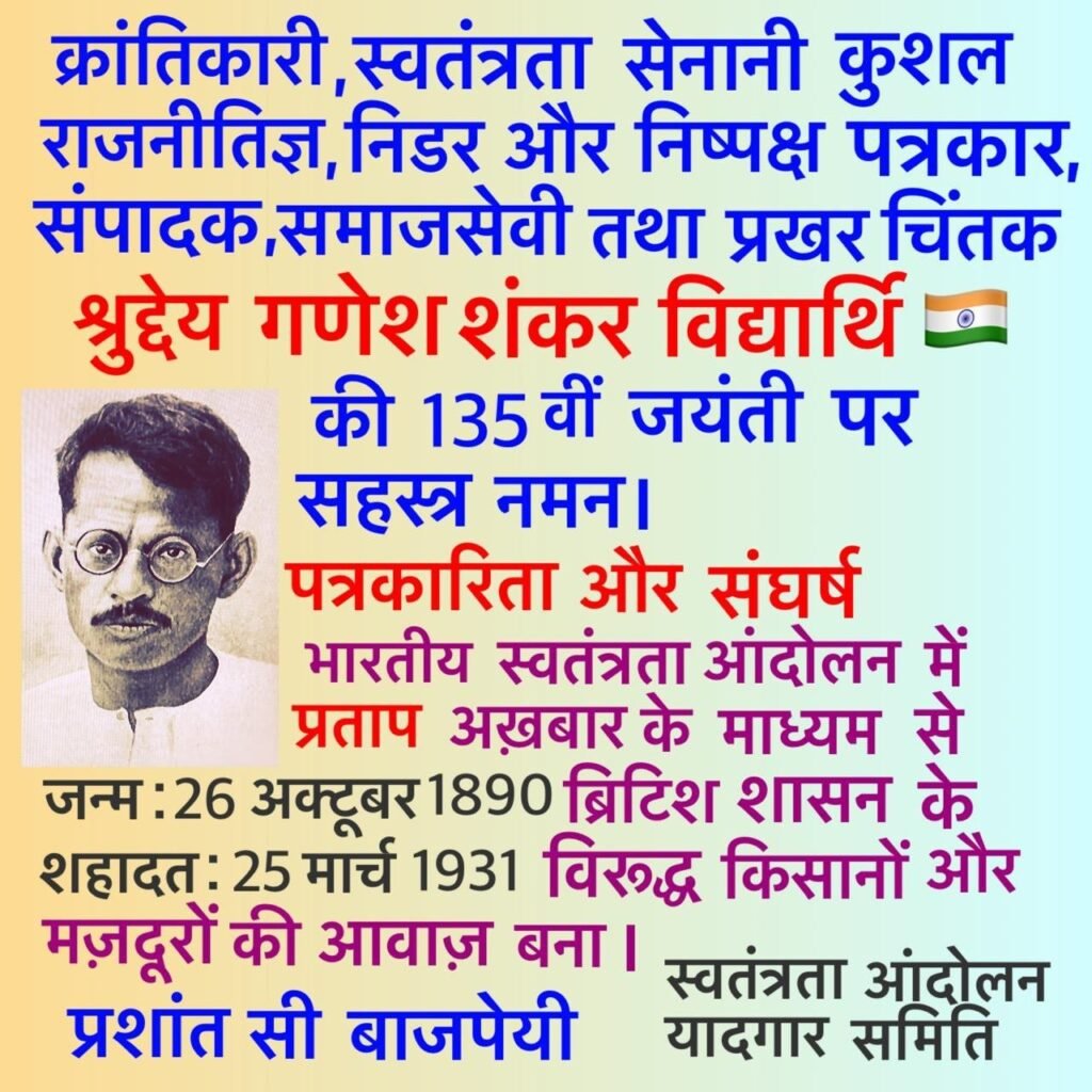 अमर शहीद गणेश शंकर विद्यार्थी की 135वीं जयंती पर देश का नमन