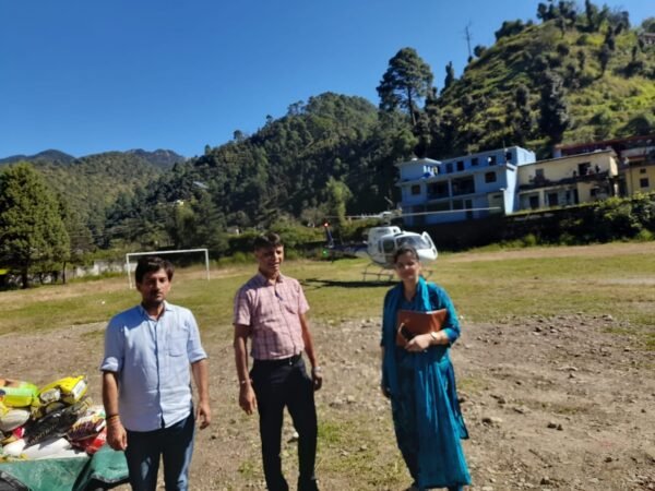 डीएम नितिका खण्डेलवाल के निर्देशन में आपदा प्रभावित रगड़ और कुंड गांवों में हेली सेवा के माध्यम से पहुँचाया खाद्यान्न