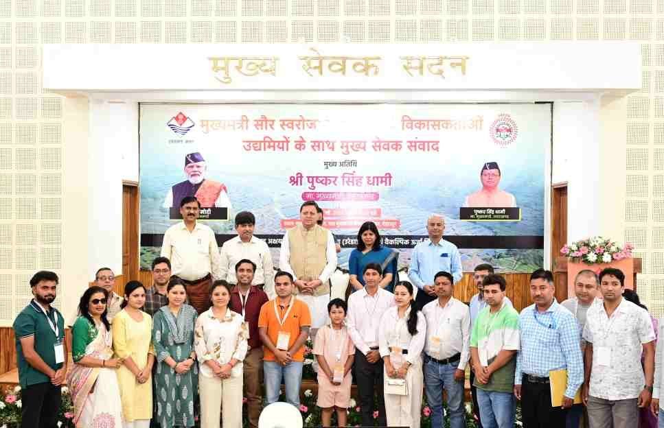 देहरादून। मुख्यमंत्री पुष्कर सिंह धामी ने गुरूवार को मुख्यमंत्री आवास स्थित मुख्य सेवक सदन में मुख्यमंत्री सौर स्वरोजगार योजना के विकासकर्ताओं के साथ मुख्य सेवक संवाद कार्यक्रम में प्रतिभाग किया। इस अवसर पर मुख्यमंत्री ने घोषणा की कि मुख्यमंत्री सौर स्वरोजगार योजना से जुड़ी महिलाओं को सौर सखी नाम दिया जायेगा। मुख्यमंत्री सौर स्वरोजगार योजना और स्वरोजगार से जुड़ी अन्य योजनाओं को व्यापक स्तर पर बढ़ावा देने विकासखण्डों में विशेष शिविरों के आयोजन किये जायेंगे। सौर प्लांटों के रख-रखाव के लिए प्रत्येक जनपद में लोगों को प्रशिक्षण दिया जायेगा।